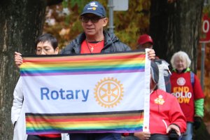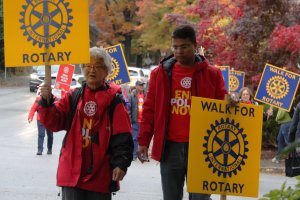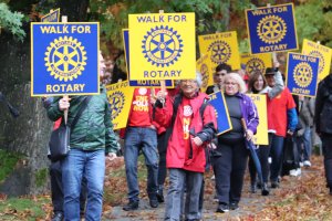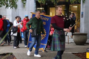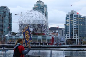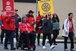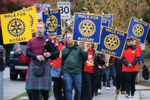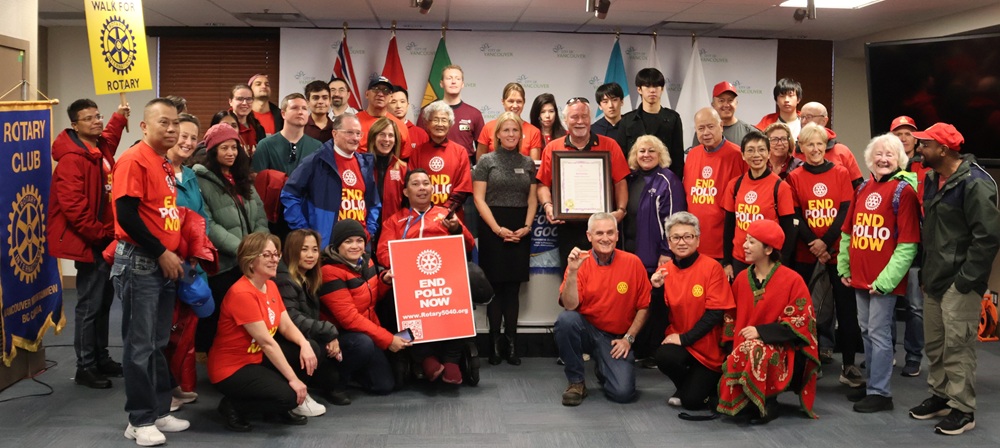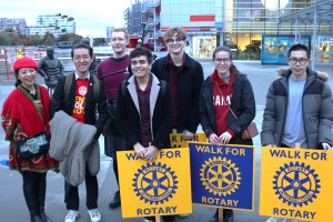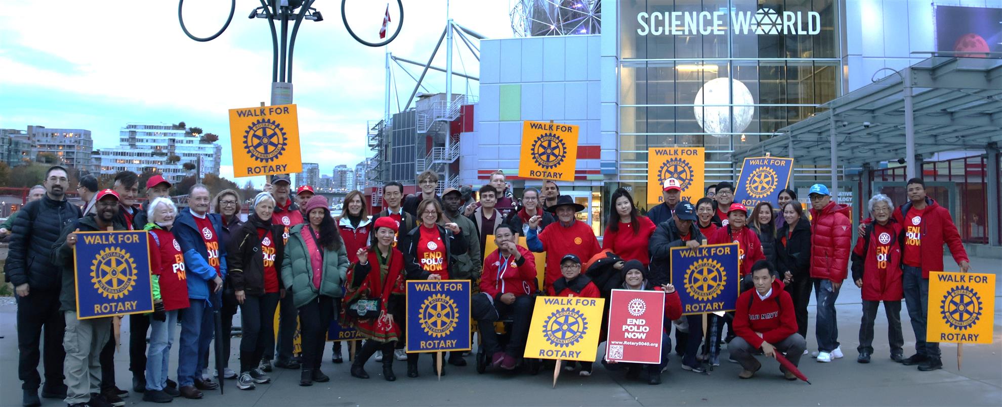 Vancouver Area Rotary, Rotaract (college, university students and young professionals), and Interact (high school) Club members, gathered with friends at Vancouver City Hall to start the Polio Walk through the city to Science World.