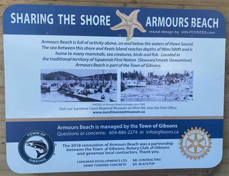 Rotary Club of Gibsons led a project to renovate the Armours Beach facility with the Town of Gibsons, supported by a Rotary District Grant of $8000