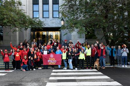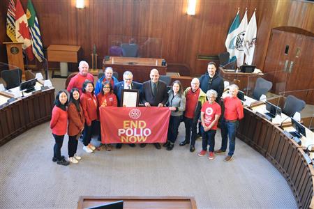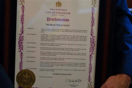 On October 22, 2022, Vancouver Rotary clubs hold Vancouver’s first World Polio Day Walk, starting with the Proclamation at City Hall followed by the walk from Vancouver City Hall to Science World.