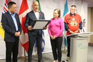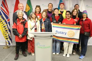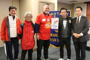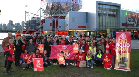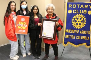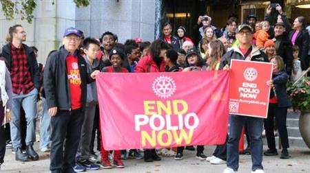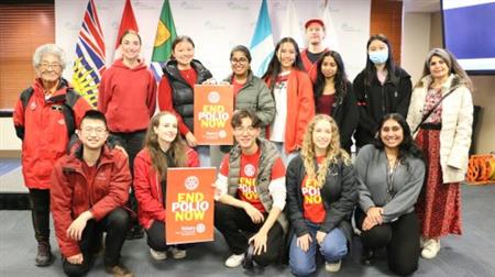 Rotary, Rotaract, Interact club members and friends gathered at Vancouver City Hall on Oct 24 2024 to hear the City of Vancouver's Proclamation in support of World Polio Day, presented by Mayor Ken Simm and three Councillors, then they walked through the city to Science World. Photos by Ken Choy, Rotaract Club of Richmond
